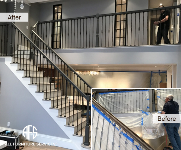 Banisters Spindles Stair cases wood work furniture restoration color change stain finish clear coat refinishing ← Previous Next →